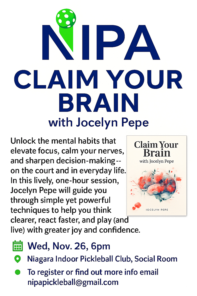 Niagara Indoor Pickleball Association (NIPA) is a non-profit organization, managed by volunteer members. NIPA is committed to providing quality opportunities for the growth, development and enjoyment of pickleball in the Niagara Region.
